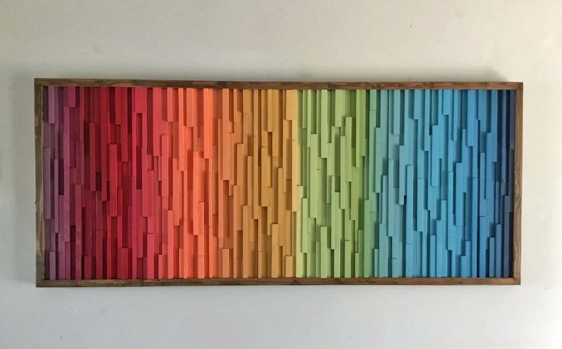 Transcending ColorsWood wall art-colorful wall art- reclaimed wood art- gradient wood art-unique art- walnut frame-