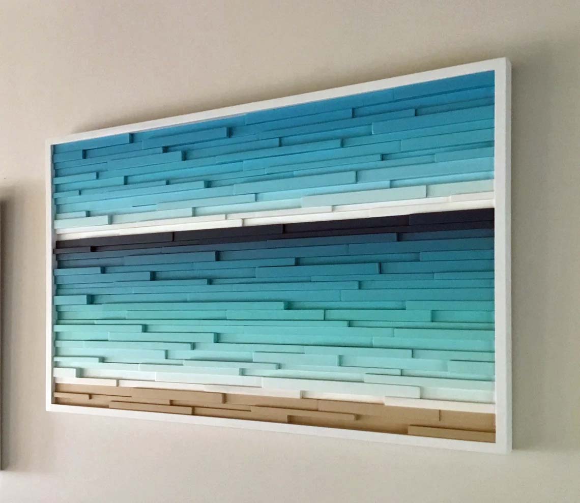 Transcending ColorsWood wall sculpture- coastal wood art- reclaimed wood- beach decor- corporate art- modern wall art, Fresh and vibrant ocean landscape/seascape