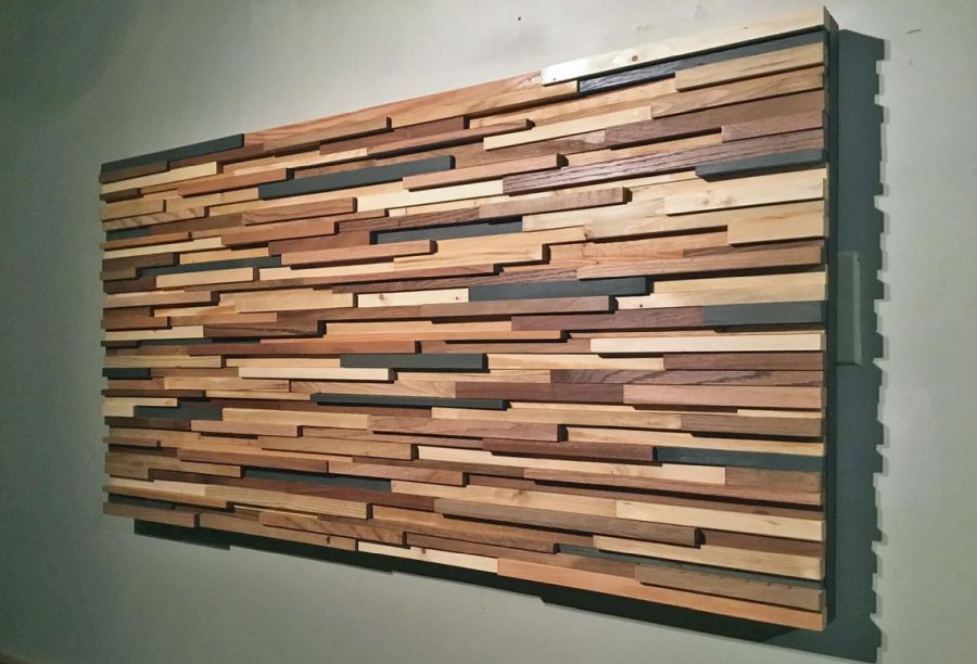 This wood tone sculpture is made from a select variety of reclaimed and up cycled woods and stains. This piece has a nice balance of texture and wood tone color throughout. If this design interest you or you would like something similar, customization of size ,color, and design are welcome, feel free to contact.
